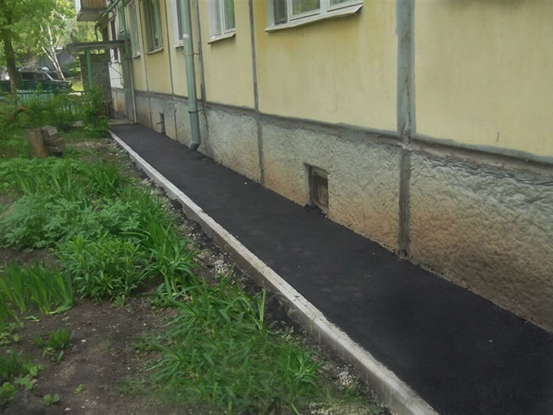 Отмостка вокруг дома – это заасфальтированная полоса, прилегающая к фундаменту или цоколю здания, под наклоном. Наличие качественно сделанной и аккуратной отмостки, является обязательным элементом здания. Благодаря ей, талая и дождевая вода, стекает от внешних стен и фундамента дома, а также не дает расти траве и другим растениям вплотную к фундаменту, тем самым разрушая его.