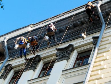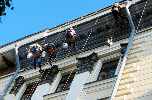 Специалисты нашей компании имеют в наличии все необходимое оборудование, для работы на высоте и разрешения, которые требуются, чтобы провести работы безопасно и качественно. Мы рекомендуем, перед покраской фасада, устранить все внешние недостатки здания, произвести нужные работы по утеплению стен и герметизации всех трещин и швов, чтобы не пришлось в будущем делать двойную работу.