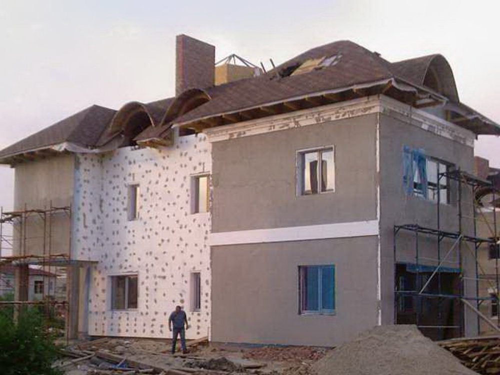 Оригинальный внешний дизайн дома, несомненно, важное преимущество в пользу «мокрого фасада». Сейчас существует множество современных отделочных материалов, которые можно использовать для экстерьера дома, чтобы Ваш дом «радовал глаз» не только изнутри, но снаружи. Мы, с удовольствием, поможем Вам выбрать дизайн фасада в любом стиле и цвете, и подарим 3D-визуализацию в подарок, чтобы Вы заранее увидеть конечный итог нашей работы.